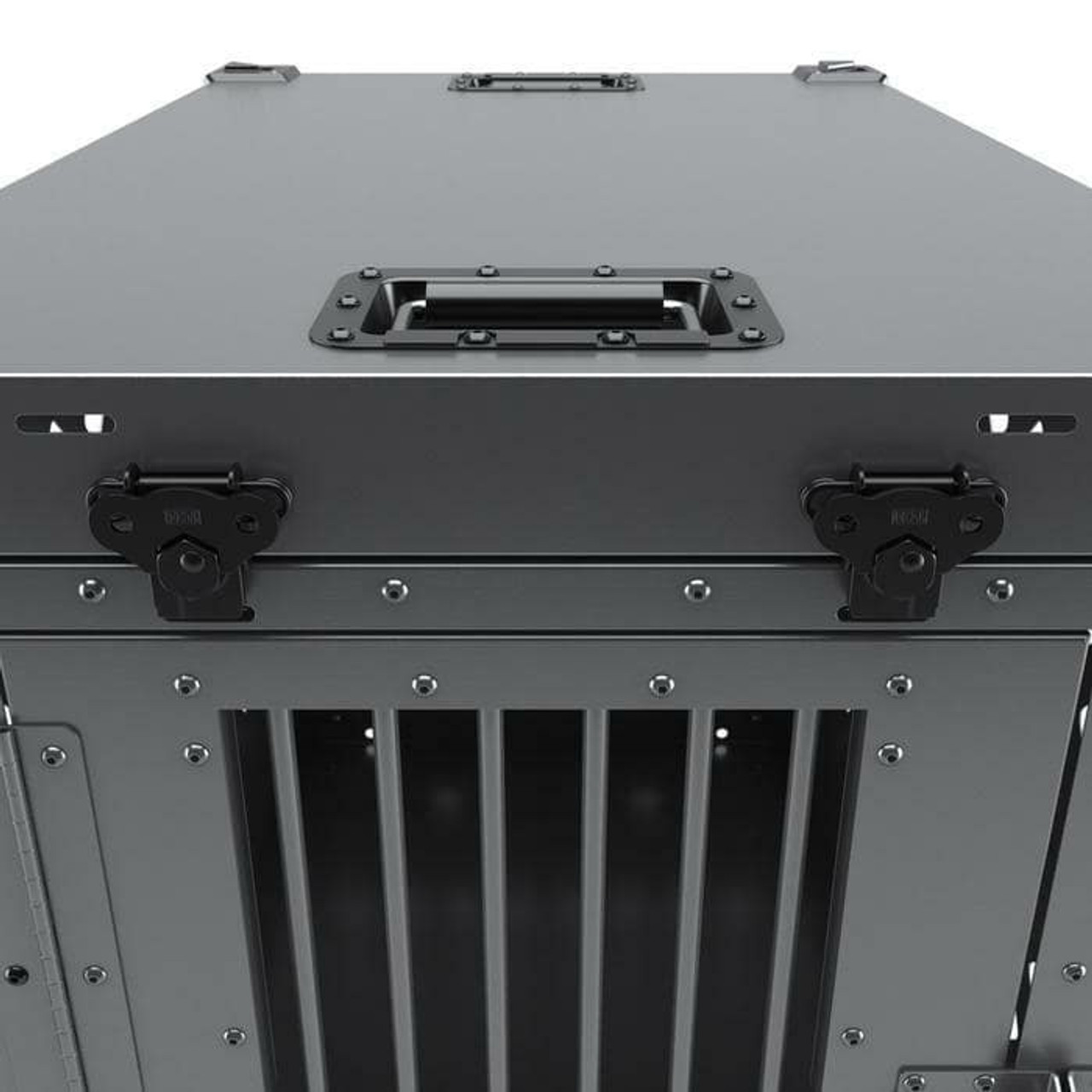 If you are traveling with a larger dog that requires more protection than a regular plastic dog crate can provide, consider this exceptionally well-built crate. It is built in the USA and made of high-quality, heavy-duty, .063 aluminum, which makes it light in comparison to wooden crates as well as being corrosion-resistant.